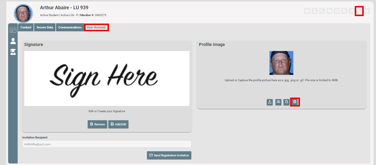 You can Upload a Profile Picture to the student’s User Account by clicking the