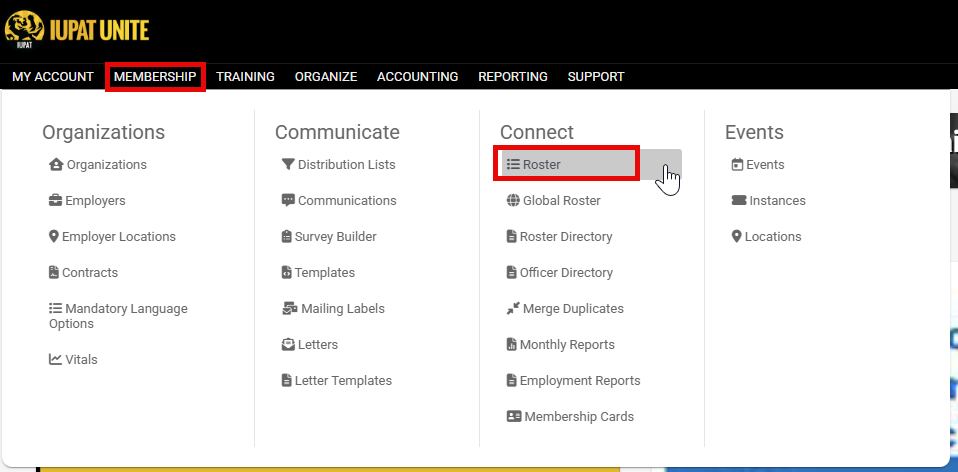 ) button in the top- right corner of their card. This will expand their card to display all available tabs. Open the User Account Tab in the member’s record.