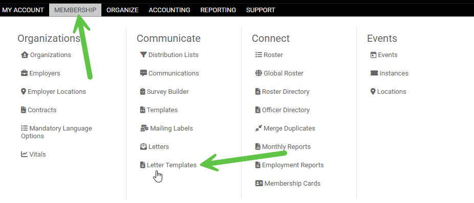 UNITE is capable of storing and using letter templates to create a easy and personized way to reach the membership. Attached are some examples of how the letter templates can be used, as well as a step by step guide on how to use them.
