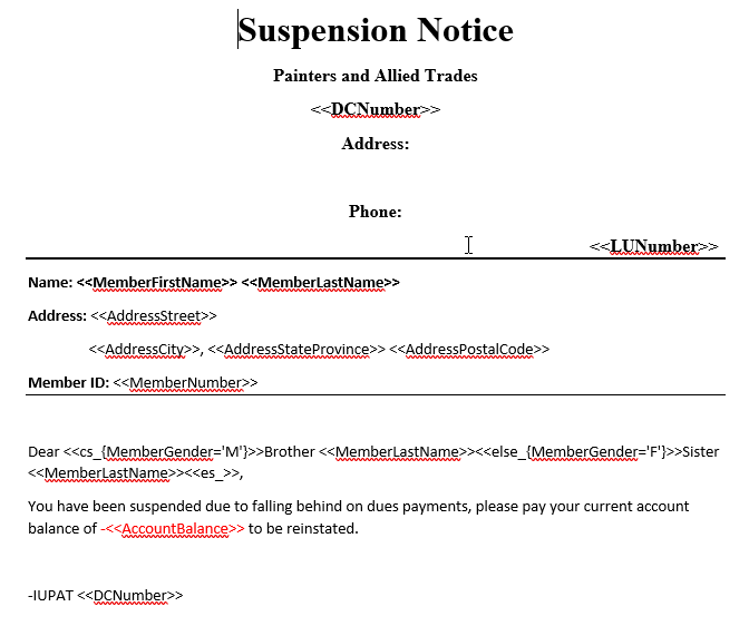 These letter templates below are to help show what is capable within UNITE and can be used to help streamline a lot of the work that is associated with sending mail to the members.