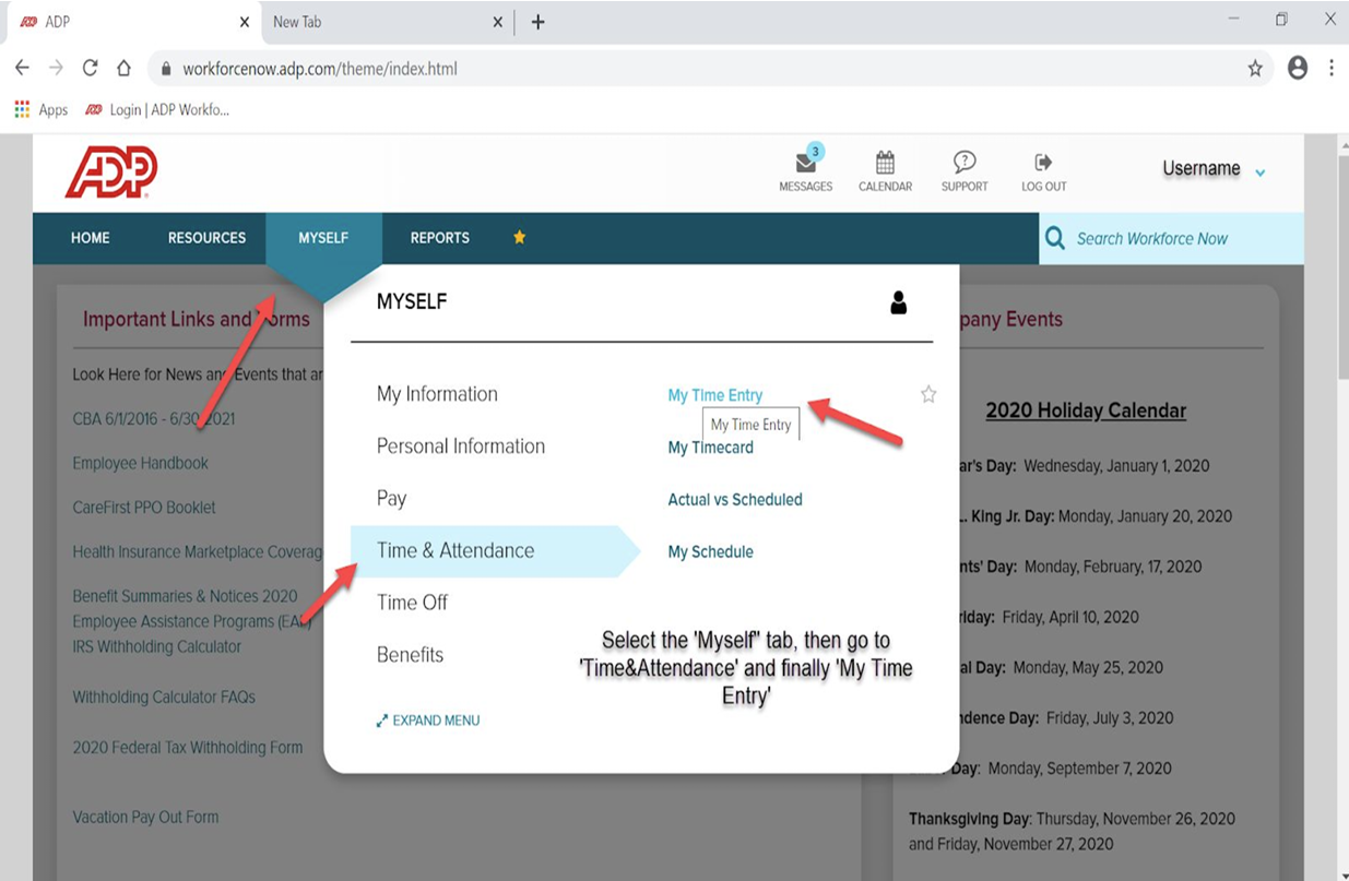 Select the Myself tab aand then click on Time & Attendance and finally My Time Entry