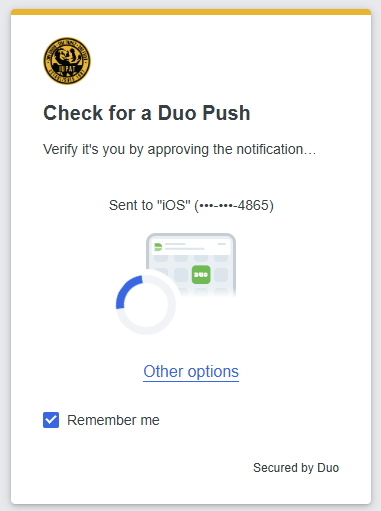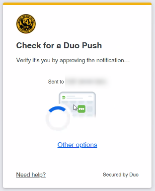 Once logged in, you’ll be prompted to check for a Duo Push.